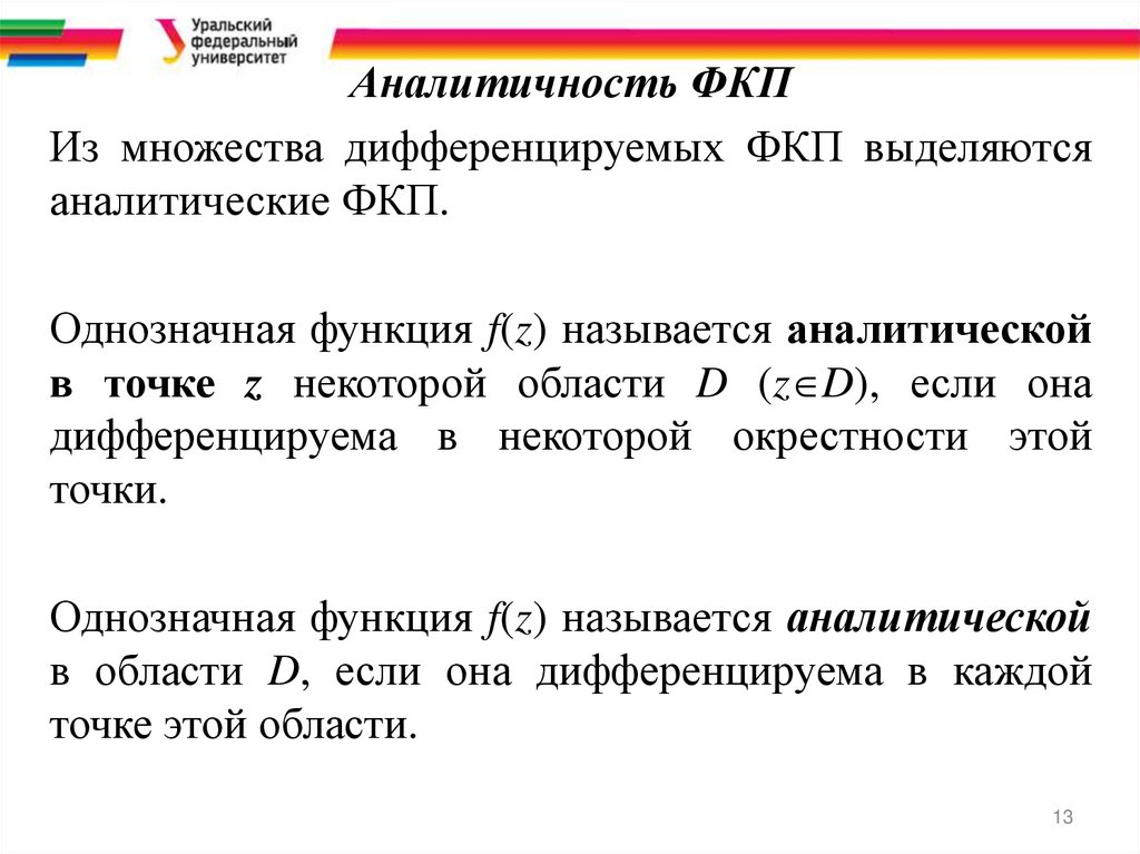 Аналитичность ФКПИз множества дифференцируемых ФКП выделяются