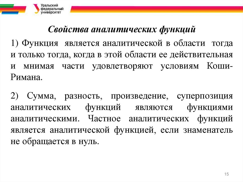 Свойства аналитических функций1) Функция является аналитической в области тогда