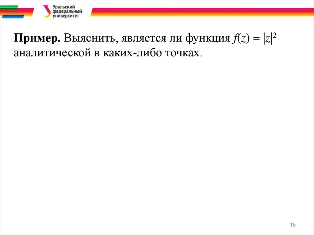 Пример. Выяснить, является ли функция f(z) = |z|2аналитической в каких-либо точках.