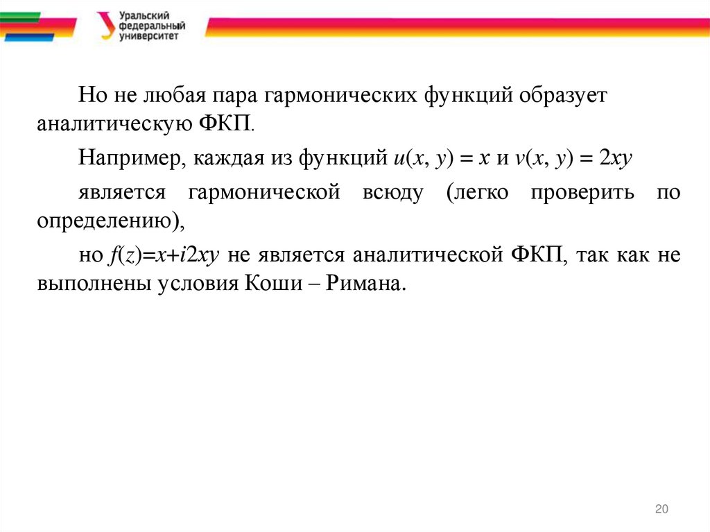 Но не любая пара гармонических функций образуетаналитическую ФКП.