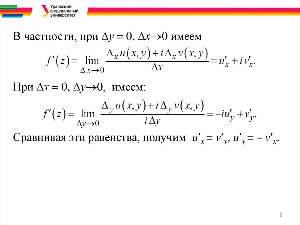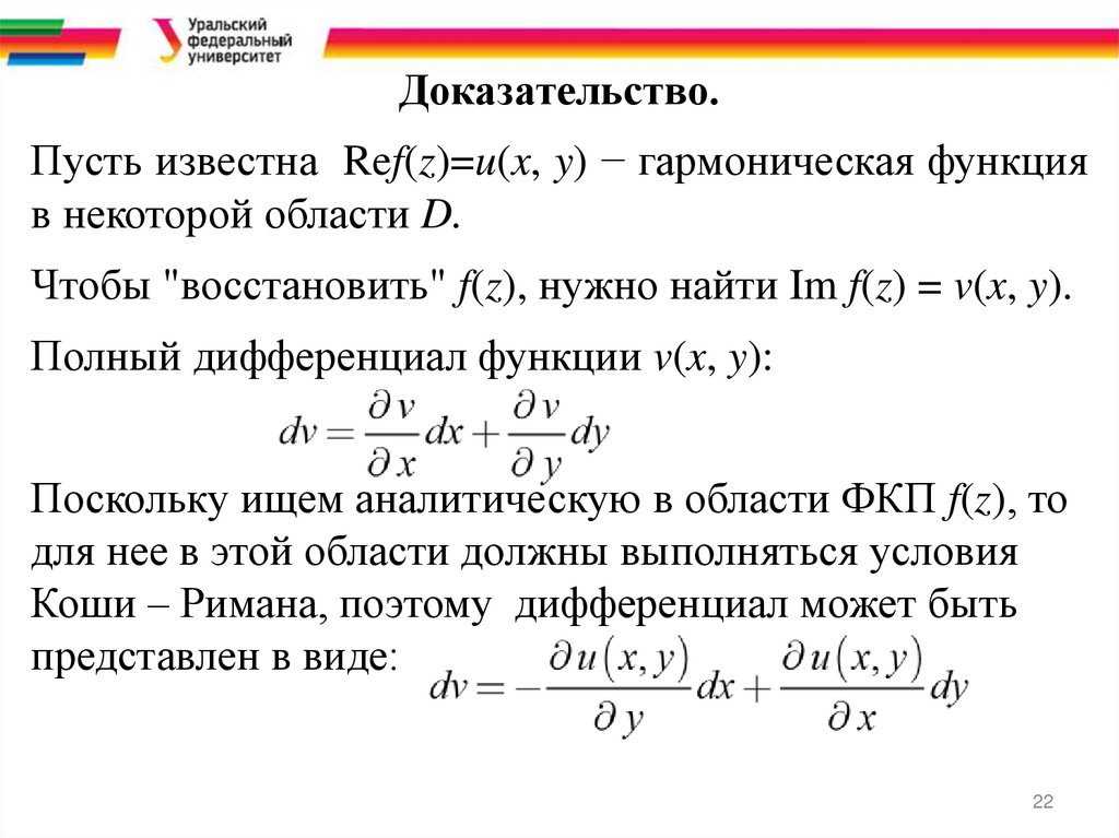 Функция f(z) = u(x, y) + i v(x, y) дифференцируема в
