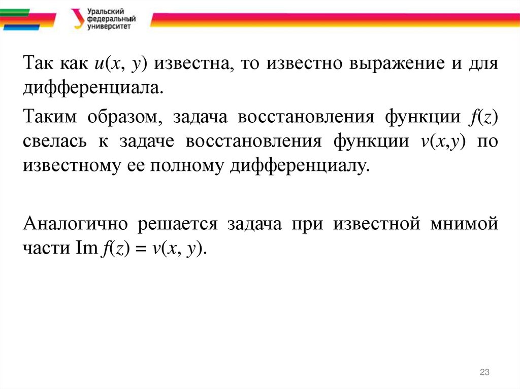 Так как u(x, y) известна, то известно выражение и длядифференциала.
