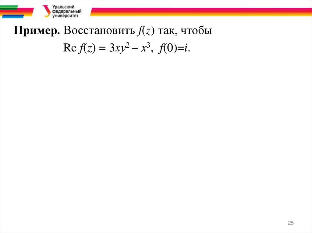 Пример. Восстановить f(z) так, чтобыIm f(z) = х3 − 3ху2 + у, f(0)=0.