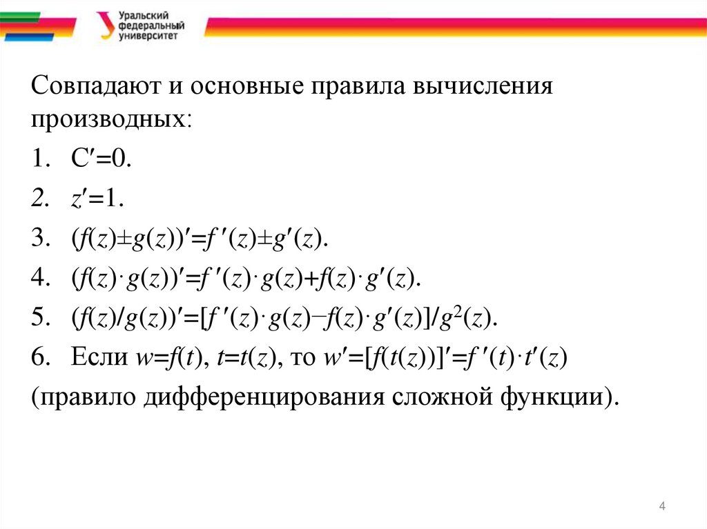 4. (f(z)·g(z)) =f (z)·g(z)+f(z)·g (z).