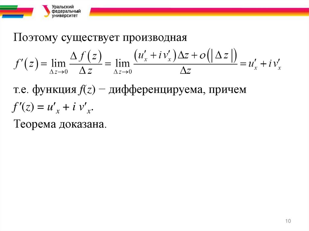 Поэтому существует производнаят.е. функция f(z) − дифференцируема, причем