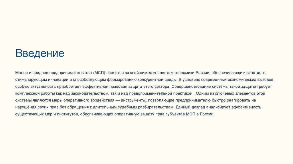 ВведениеМалое и среднее предпринимательство (МСП) является важнейшим компонентом экономики России, обеспечивающим занятость,