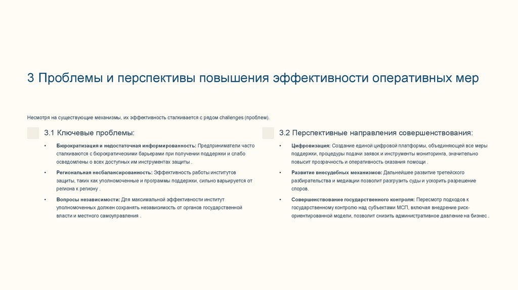3 Проблемы и перспективы повышения эффективности оперативных мерНесмотря на существующие механизмы, их эффективность сталкивается с рядом challenges (проблем).