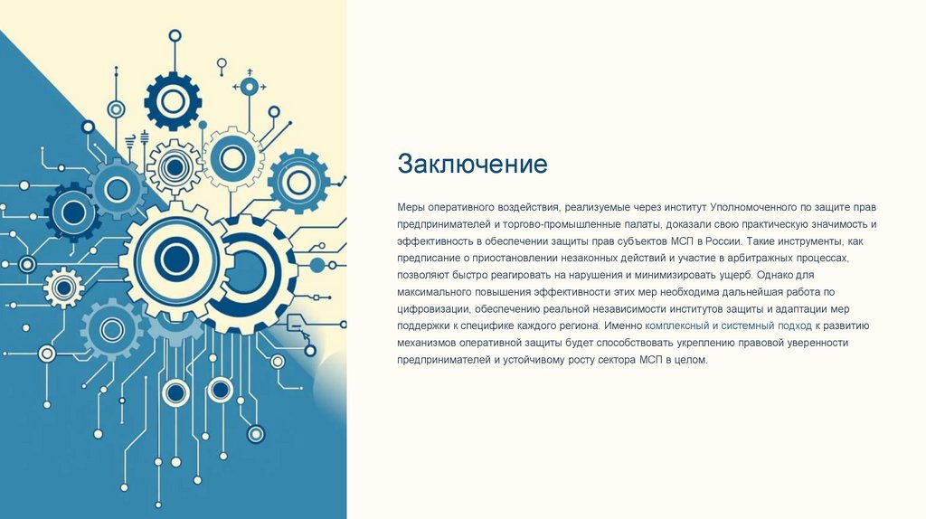 существующих мер и институтов, обеспечивающих оперативную защиту прав субъектов МСП в России.