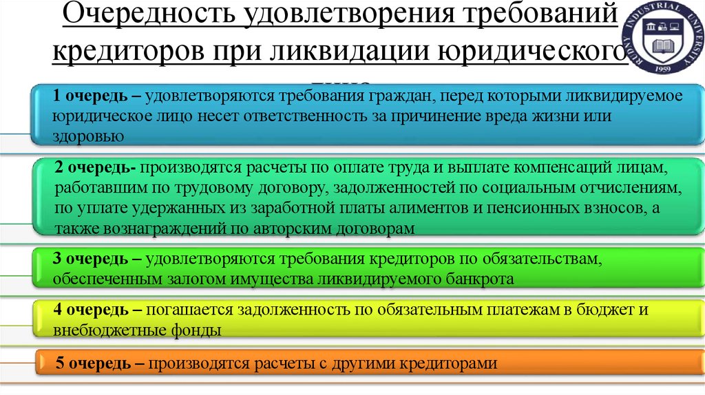 Очередность удовлетворения требованийкредиторов при ликвидации юридического