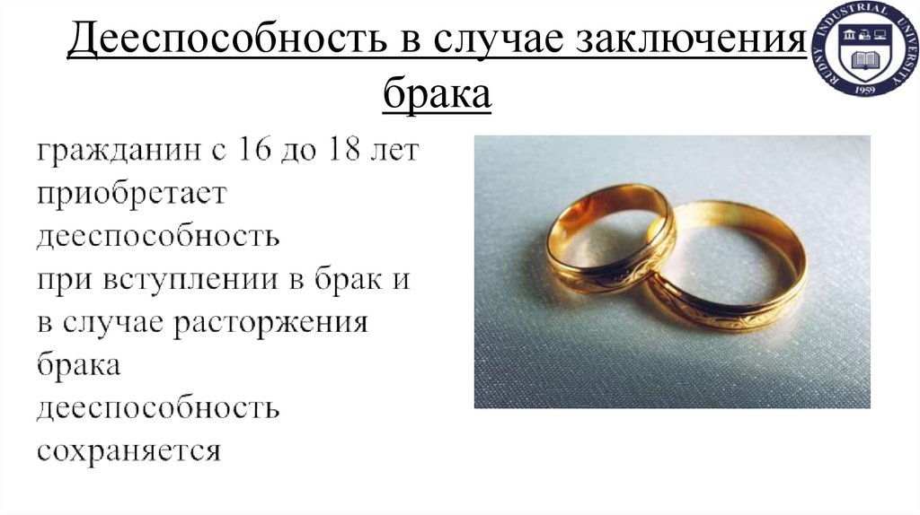 19. Дееспособность в случае заключения брака