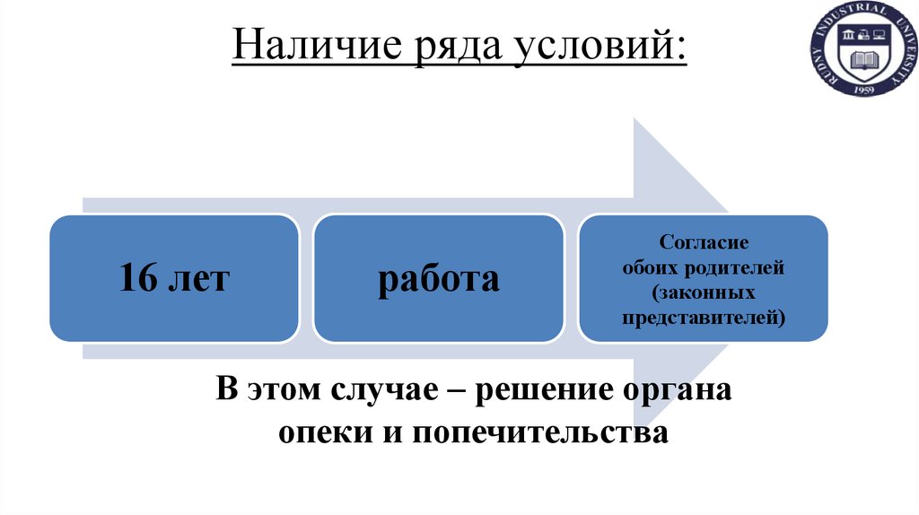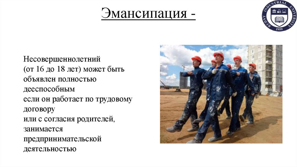 Эмансипация Несовершеннолетний(от 16 до 18 лет) может быть