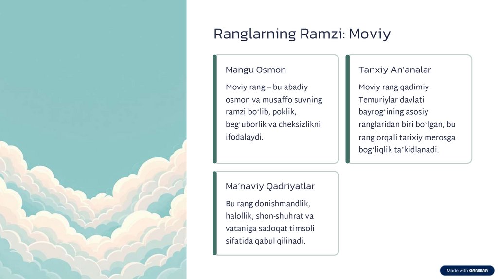 qadriyatlarini, madaniy oʻziga xosligini va milliy