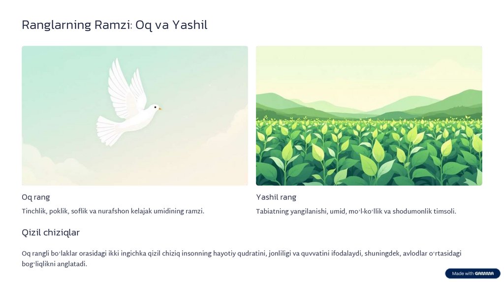 Tinchlik, poklik, soflik va nurafshon kelajak umidining ramzi.