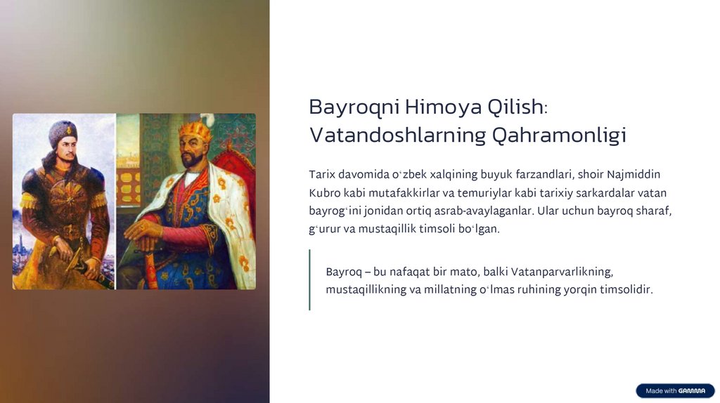 Kubro kabi mutafakkirlar va temuriylar kabi tarixiy sarkardalar vatan