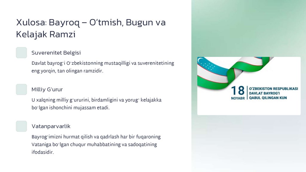 Xulosa: Bayroq – Oʻtmish, Bugun vaKelajak Ramzi