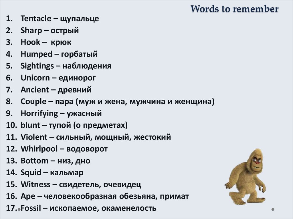 1. Tentacle – щупальце2. Sharp – острый