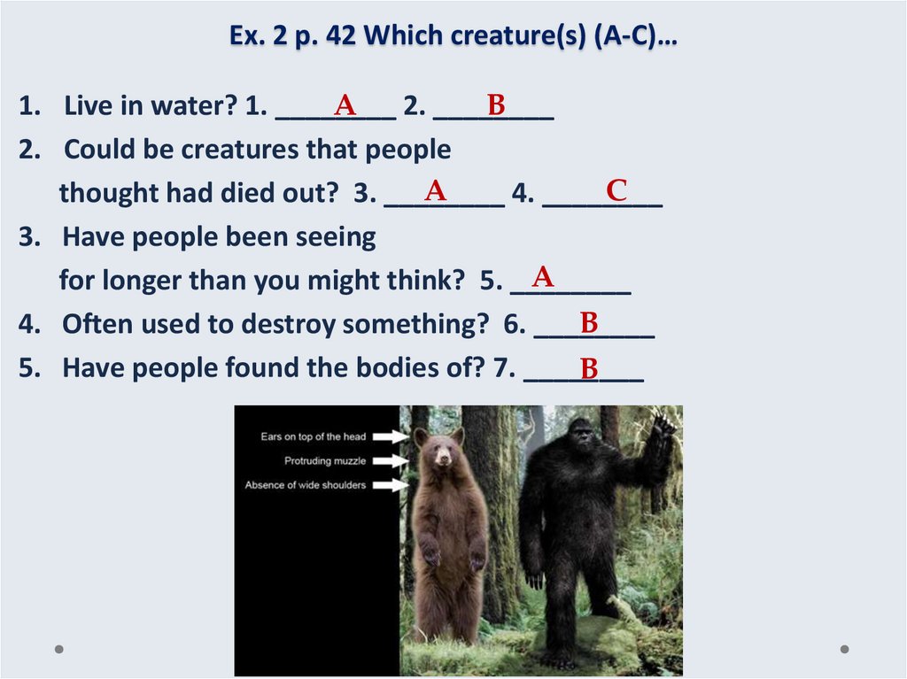 4. Ex. 2 p. 42 Which creature(s) (A-C)…