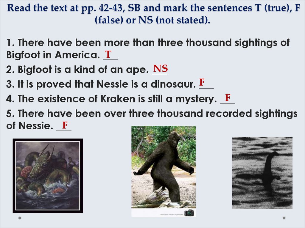 5. Read the text at pp. 42-43, SB and mark the sentences T (true), F (false) or NS (not stated).