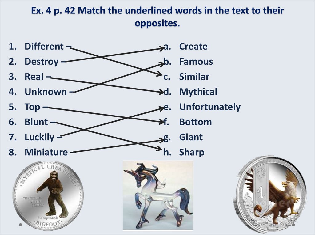 7. Ex. 4 p. 42 Match the underlined words in the text to their opposites.