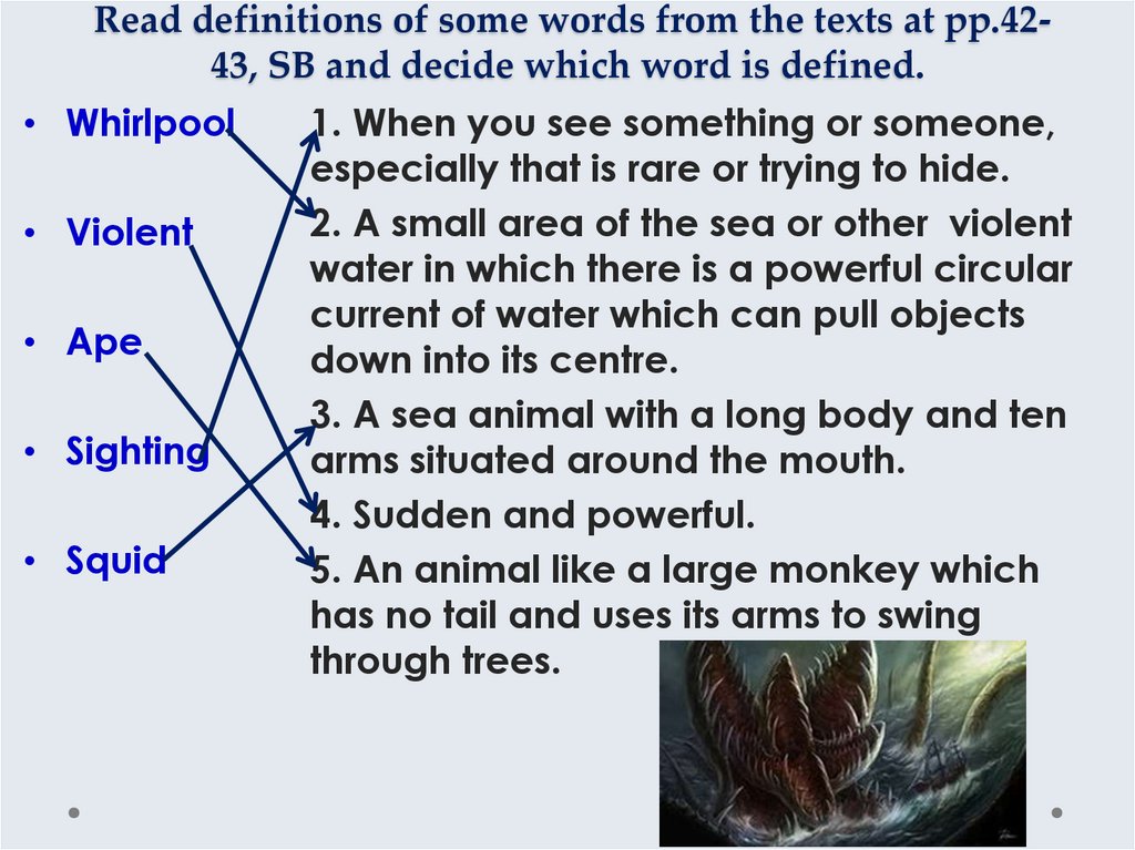 Read definitions of some words from the texts at pp.4243, SB and decide which word is defined.• Whirlpool