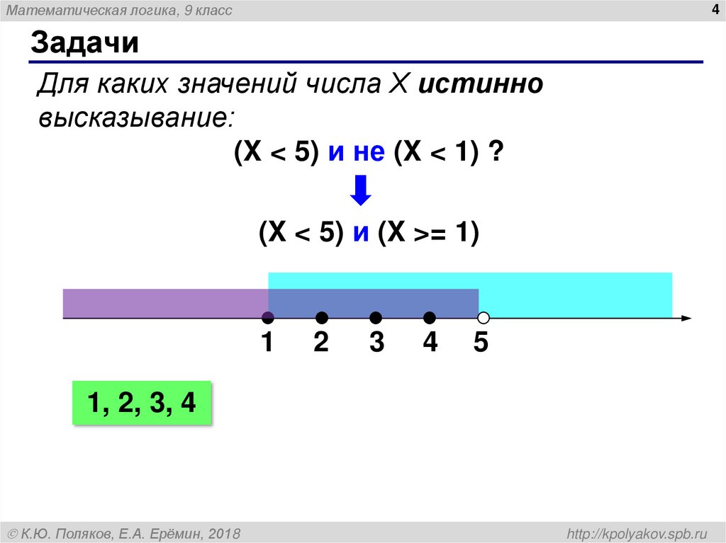 (не (X ≥ 3) и не (X = 8)) или (X ≤ 5) ?