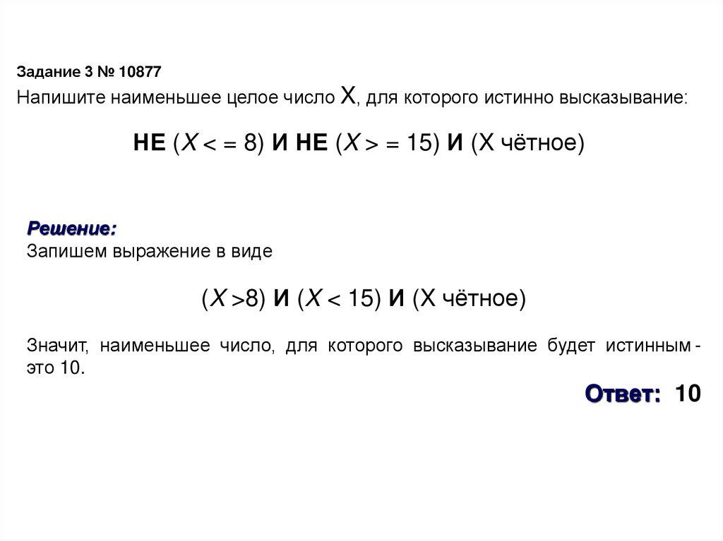 Задание 3 № 10877Напишите наименьшее целое число X, для которого истинно высказывание: