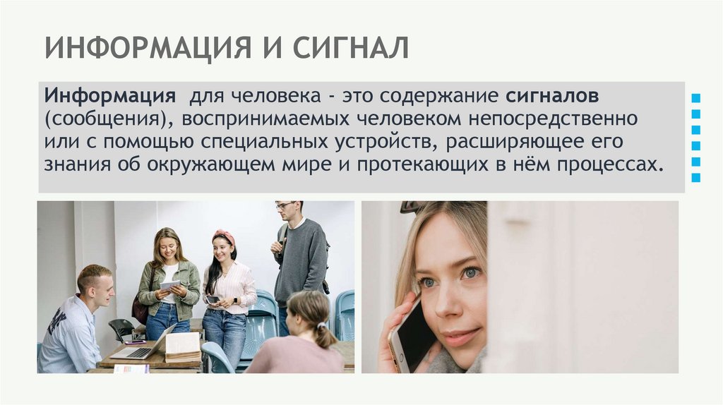 САМОЕ ГЛАВНОЕИнформация для человека — это содержание сигналов