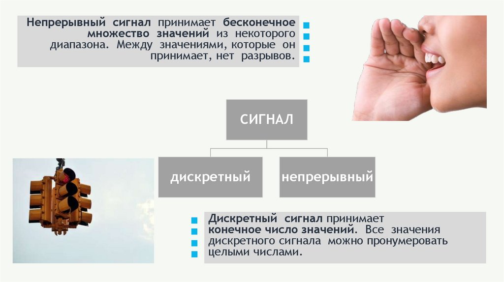 Непрерывный сигнал принимает бесконечноемножество значений из некоторого