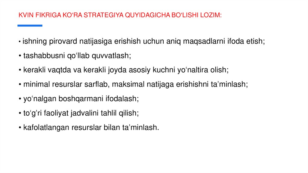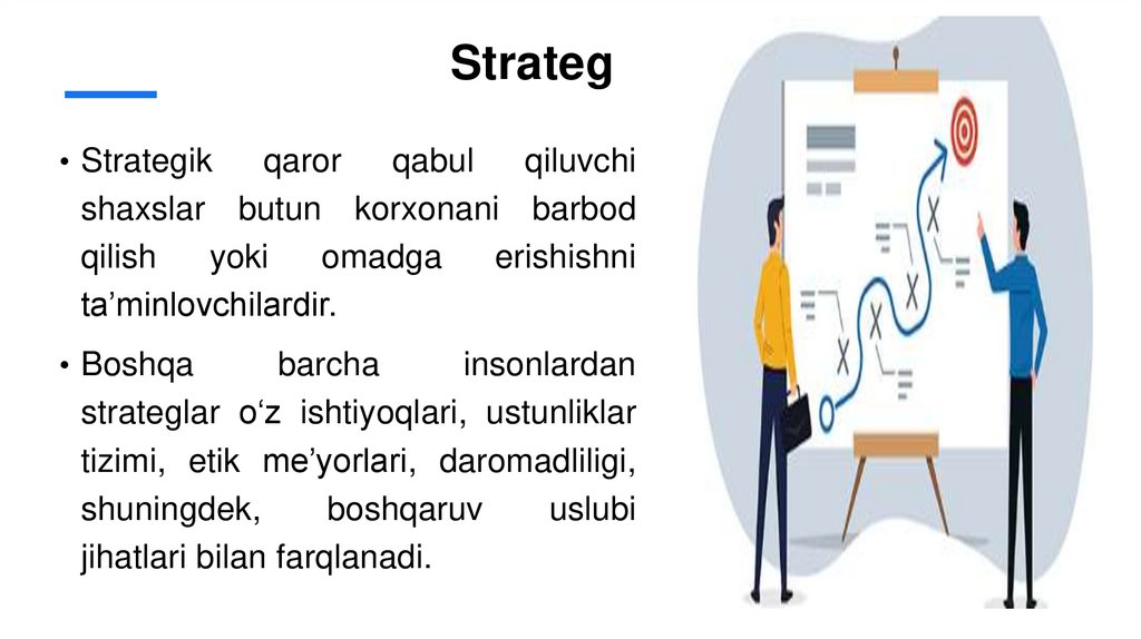 chiqib, uning strategiyasi aniqlanadi. Qabul qilingan strategiyalar