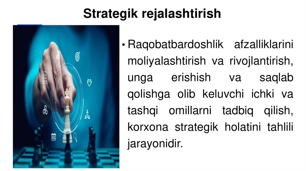 tashkilot strategiyasini belgilovchi eng muhim omillardan biridir. Demak,