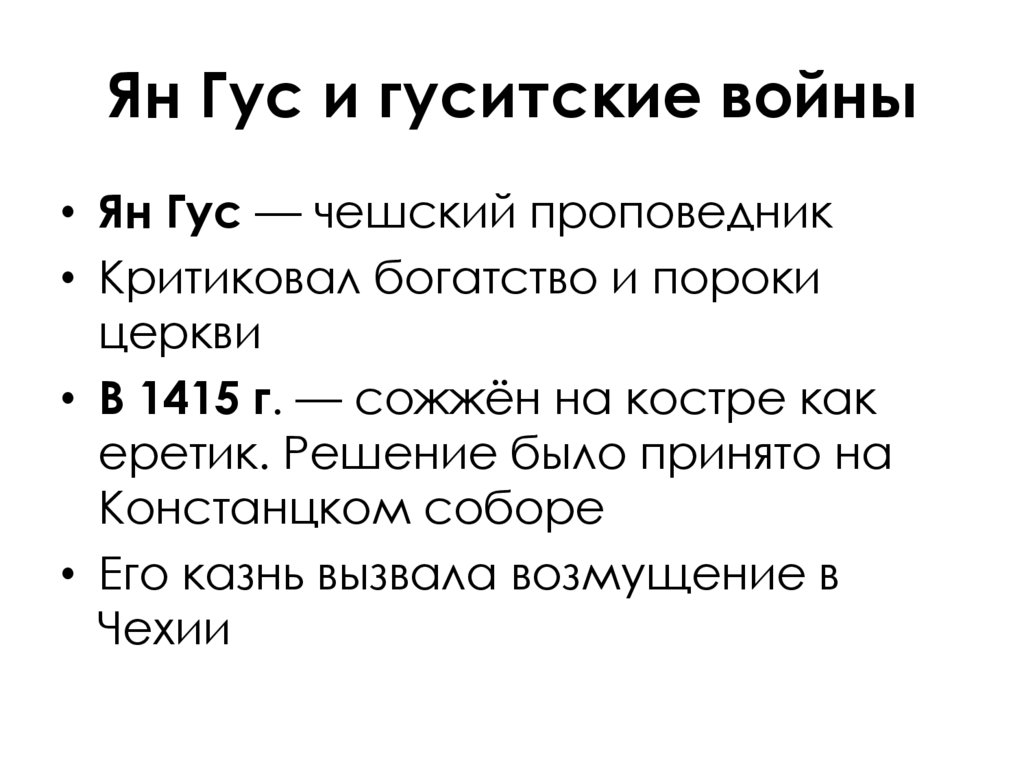 • Ян Гус — чешский проповедник• Критиковал богатство и пороки