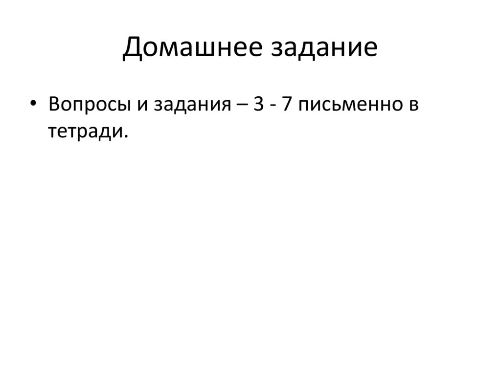 • Вопросы и задания – 3 - 7 письменно втетради.
