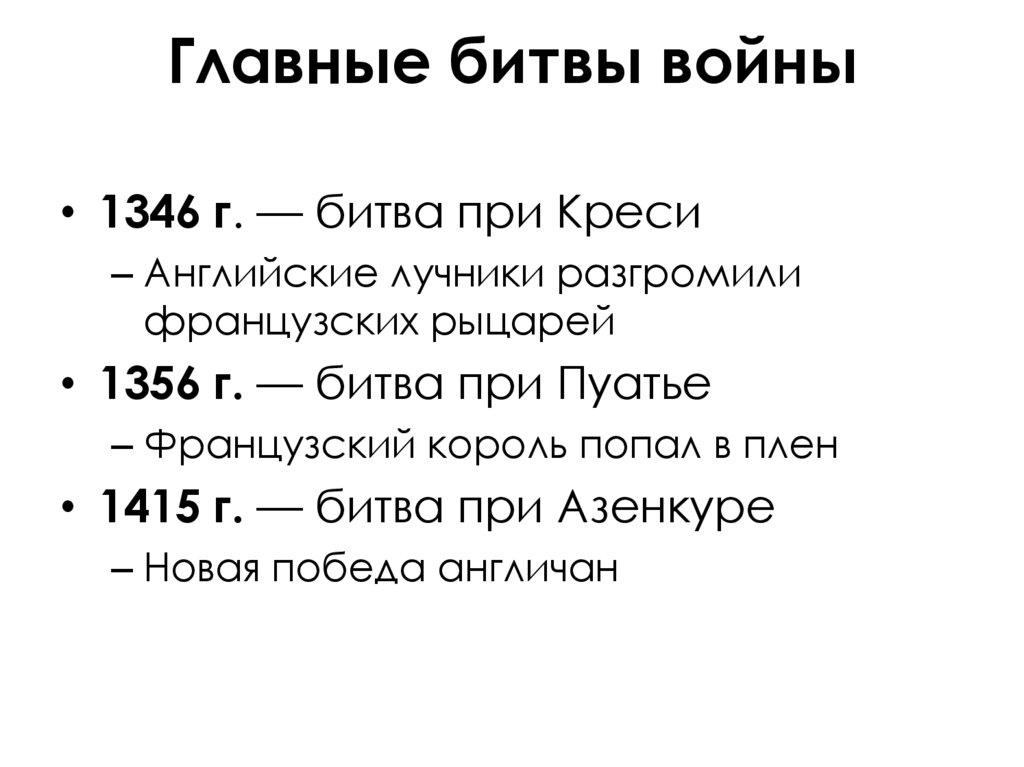 • 1346 г. — битва при Креси– Английские лучники разгромили