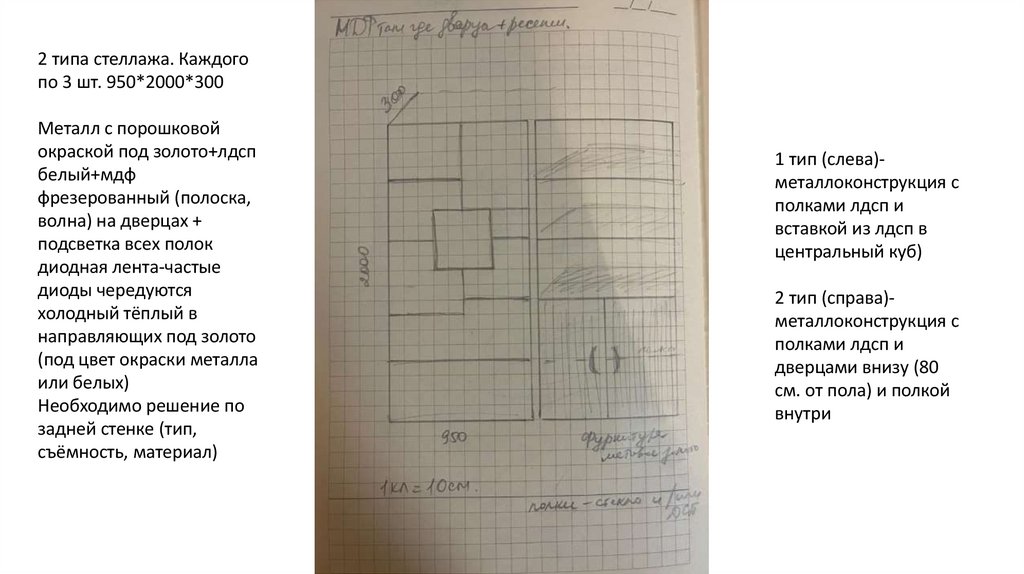 2 типа стеллажа. Каждогопо 3 шт. 950*2000*300