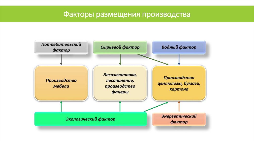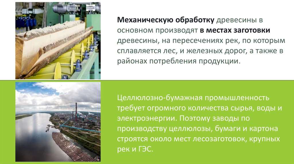 Факторы размещения производства3. Механическую обработку древесины в основном производят в местах заготовки древесины, на пересечениях рек, по которым