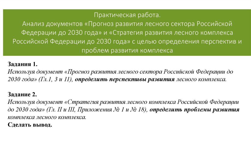 Практическая работа.Анализ документов «Прогноз развития лесного сектора Российской