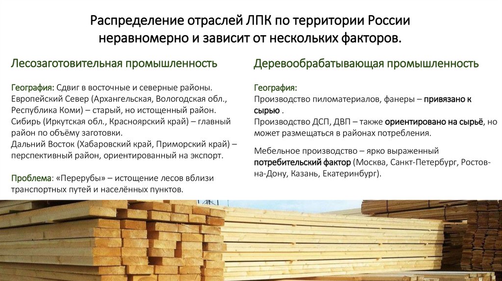 Распределение отраслей ЛПК по территории Россиинеравномерно и зависит от нескольких факторов.