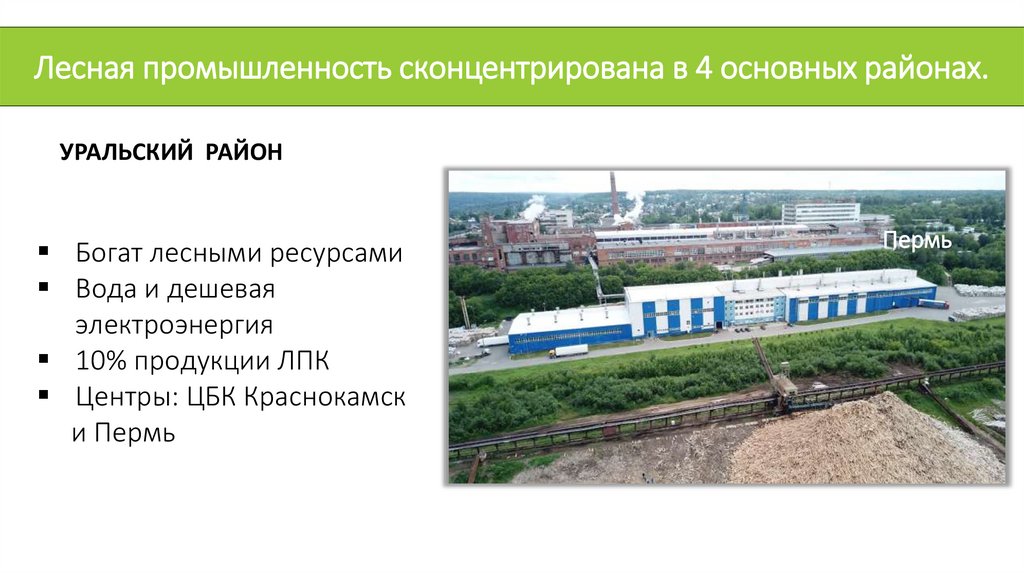 Лесная промышленность сконцентрирована в 4 основных районах.УРАЛЬСКИЙ РАЙОН
