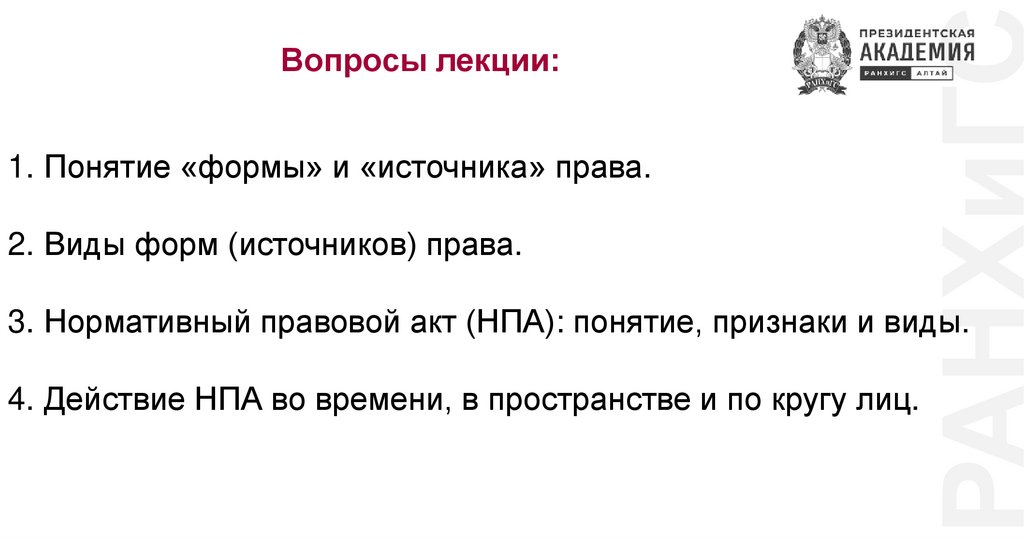 РАНХиГСФорма права представляет собой определенные способы