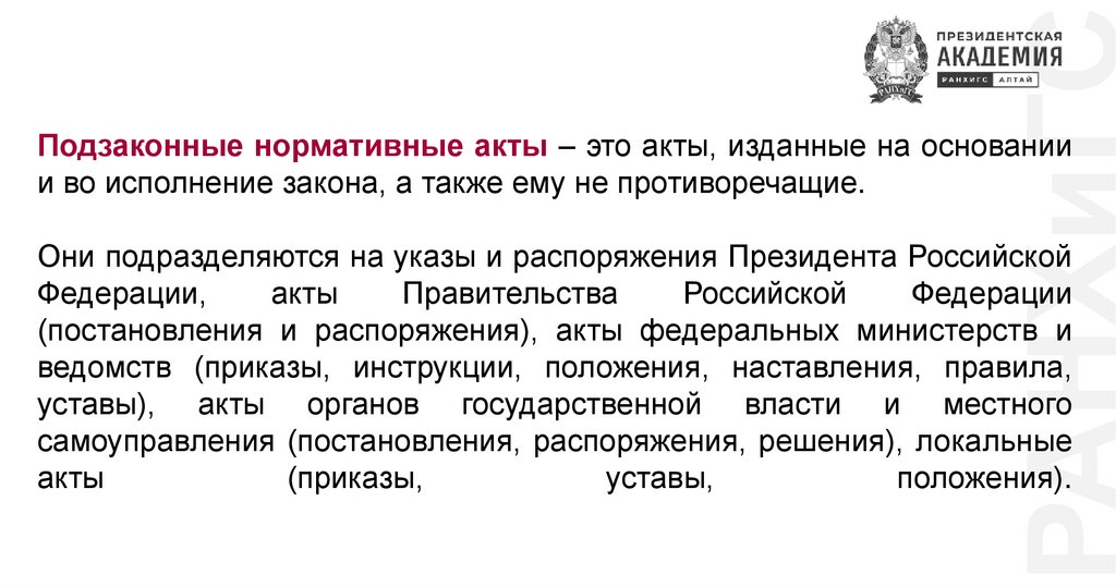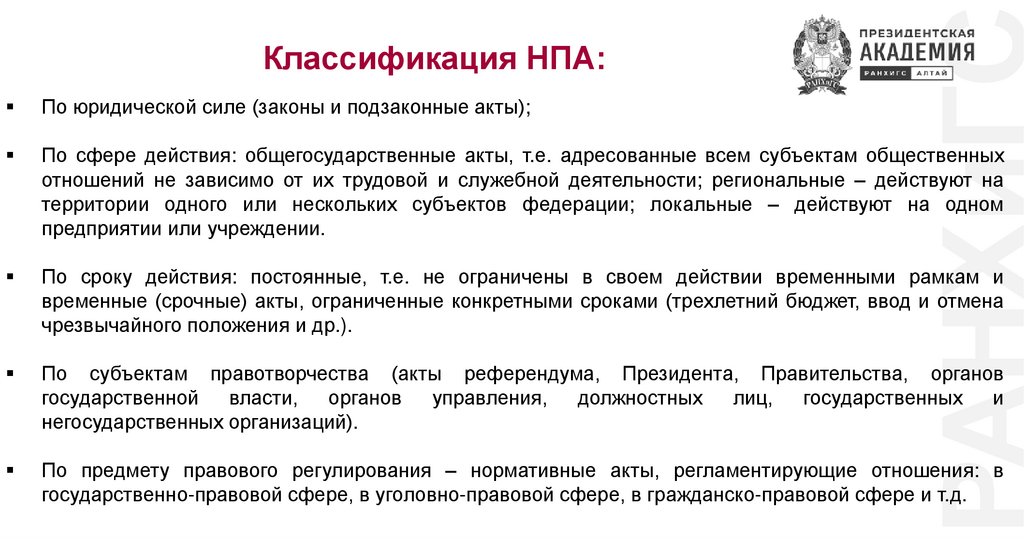 РАНХиГСКлассификация НПА: