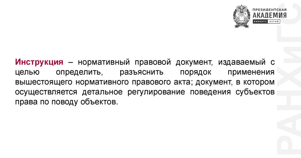 РАНХиГСИнструкция – нормативный правовой документ, издаваемый с