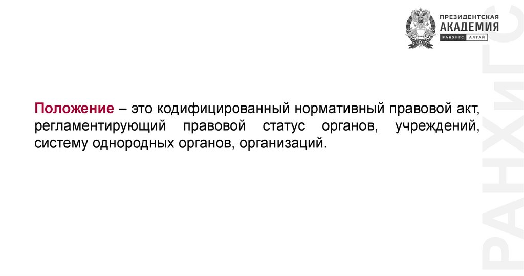 РАНХиГСПоложение – это кодифицированный нормативный правовой акт,