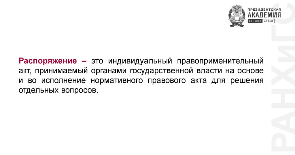 РАНХиГСРаспоряжение – это индивидуальный правоприменительный