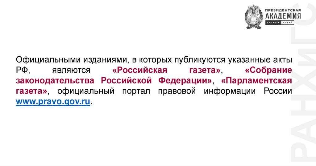 РАНХиГСОфициальными изданиями, в которых публикуются указанные акты