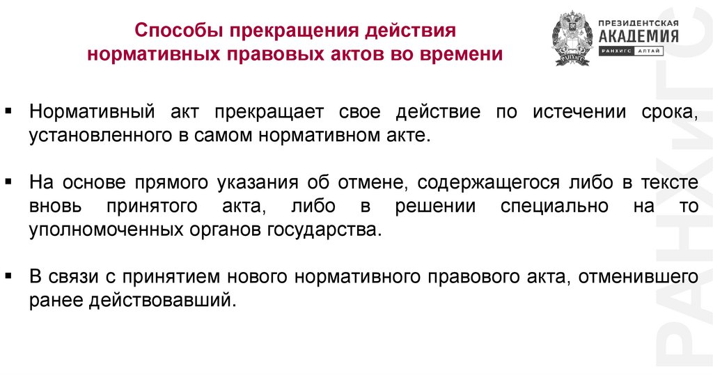 РАНХиГССпособы прекращения действия