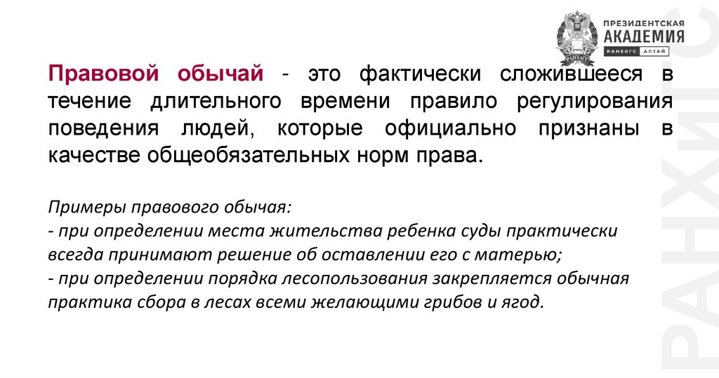 РАНХиГСПравовой обычай - это фактически сложившееся в