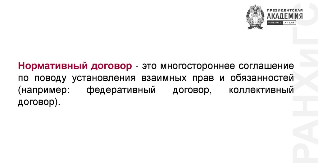 РАНХиГСНормативный договор - это многостороннее соглашение