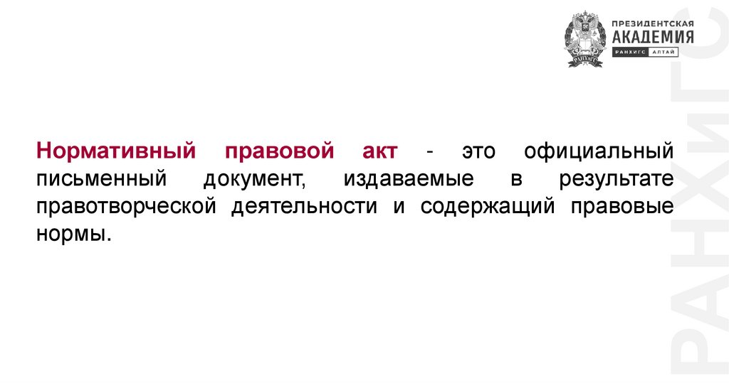 РАНХиГСНормативный правовой акт - это официальный