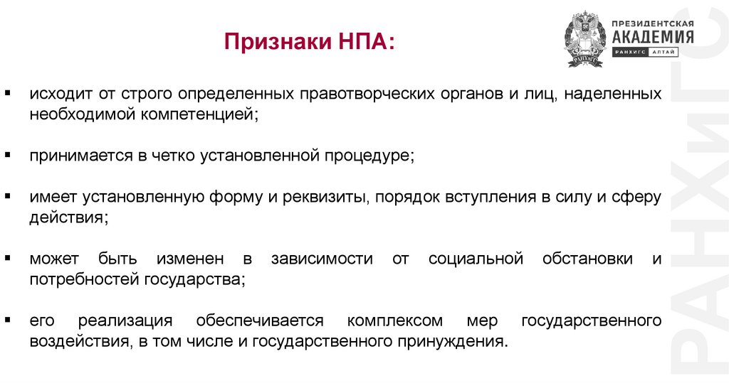РАНХиГСПризнаки НПА: