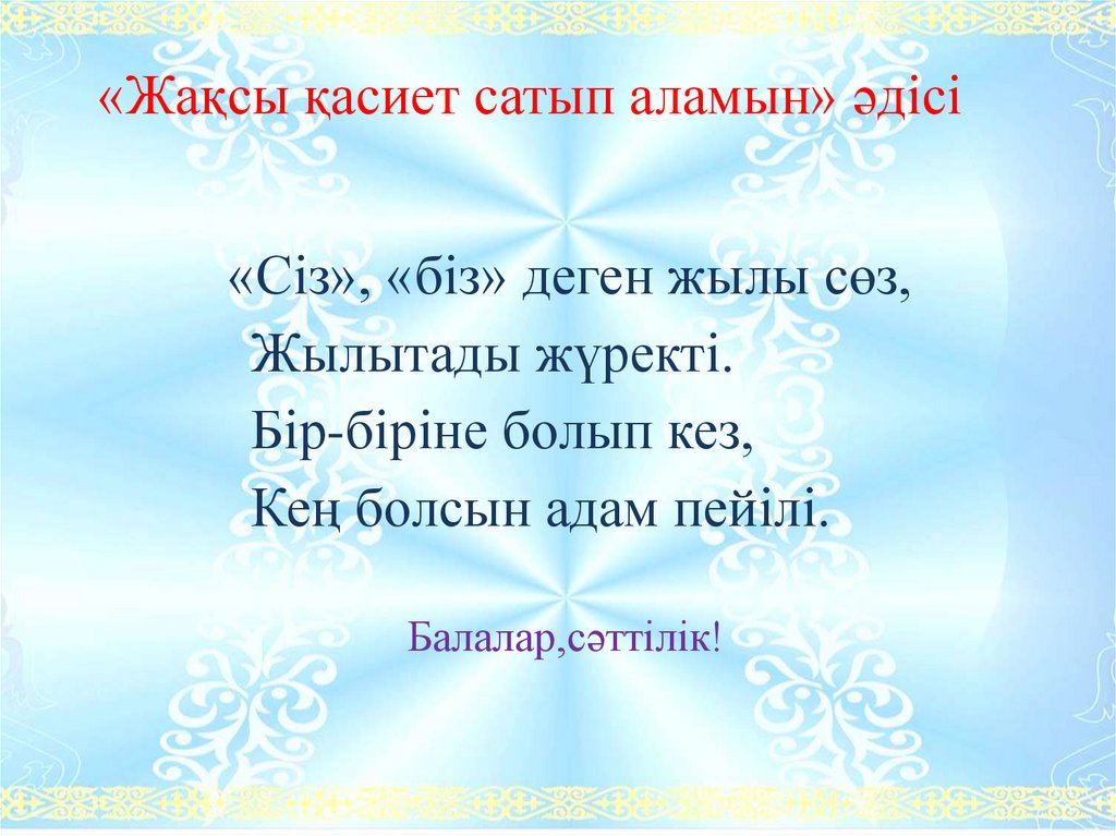 «Жақсы қасиет сатып аламын» әдісі«Сіз», «біз» деген жылы сөз,